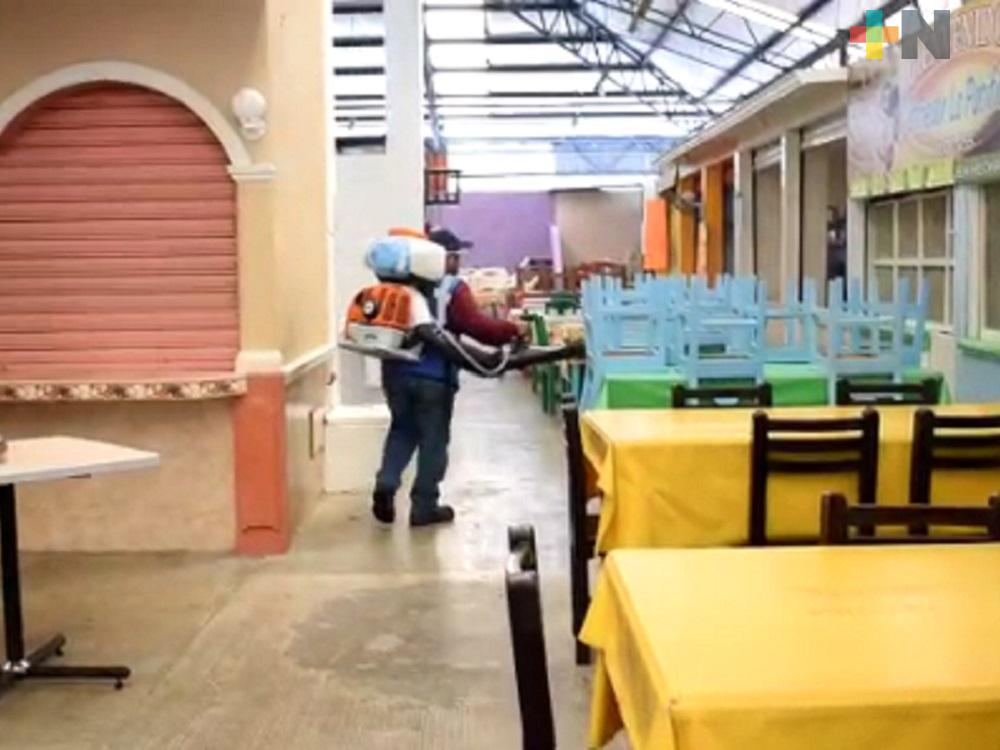 Tantoyuca es un municipio donde el comercio de las comunidades y el establecido, se concentran en un solo punto, ahí mismo se llevaron a cabo distintas tareas de limpieza que contemplan al área de comida y a los espacios donde se venden alimentos de la canasta básica.