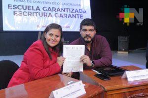 Huatusco, Ver.- La Secretaría de Educación de Veracruz (SEV) y el Ayuntamiento de Huatusco firmaron un convenio de colaboración para poner en marcha el programa «Escuela Garantizada, Escritura Garante».