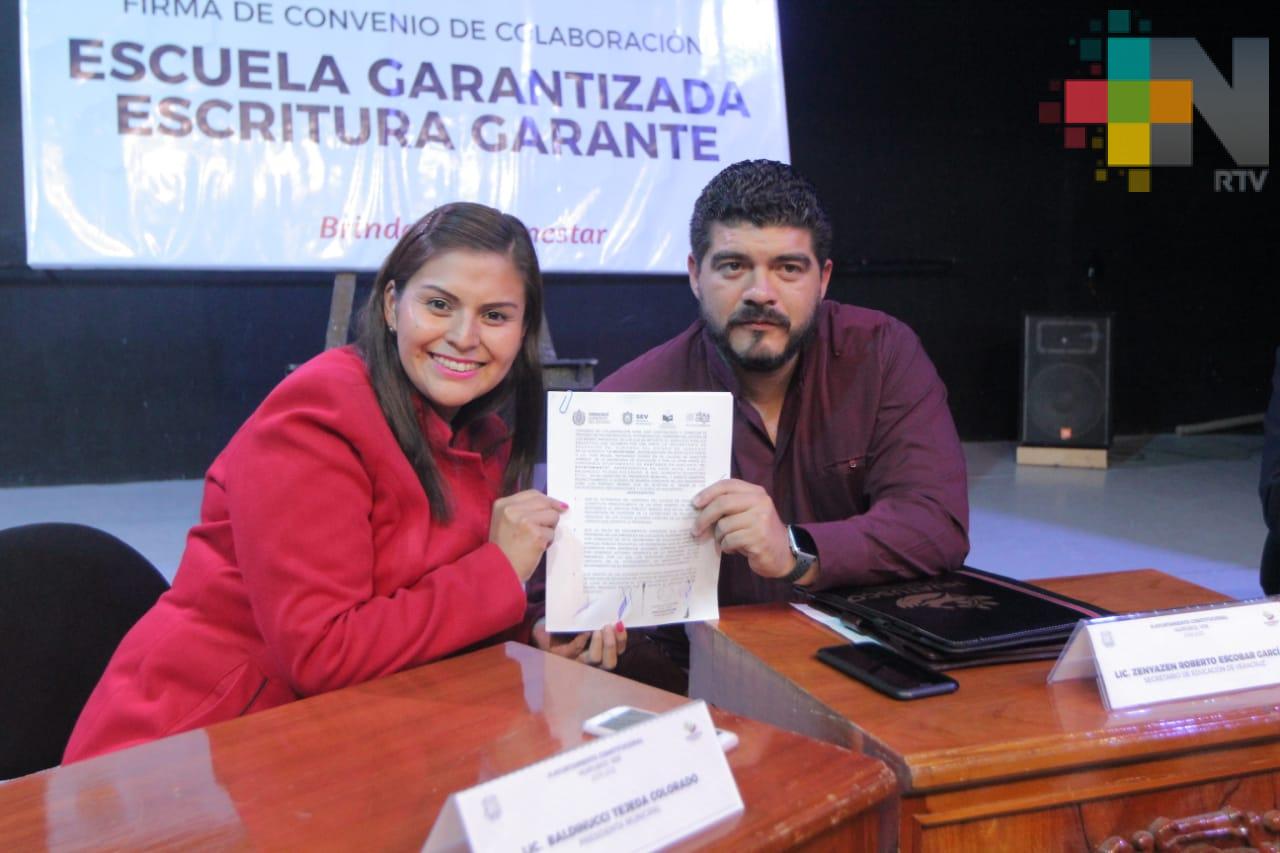 Huatusco, Ver.- La Secretaría de Educación de Veracruz (SEV) y el Ayuntamiento de Huatusco firmaron un convenio de colaboración para poner en marcha el programa «Escuela Garantizada, Escritura Garante».