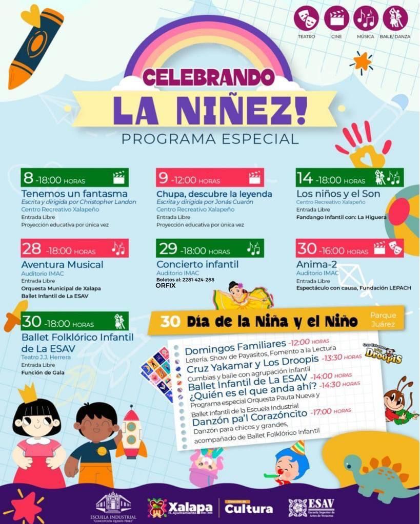 Xalapa, Ver.- Consciente de la importancia de fomentar las diferentes expresiones artísticas y culturales en la niñez, al ser parte fundamental de su desarrollo, el Ayuntamiento de Xalapa celebrará a las niñas y los niños con un programa especial que contempla la proyección de películas, obras de teatro, presentaciones de ballet y conciertos.