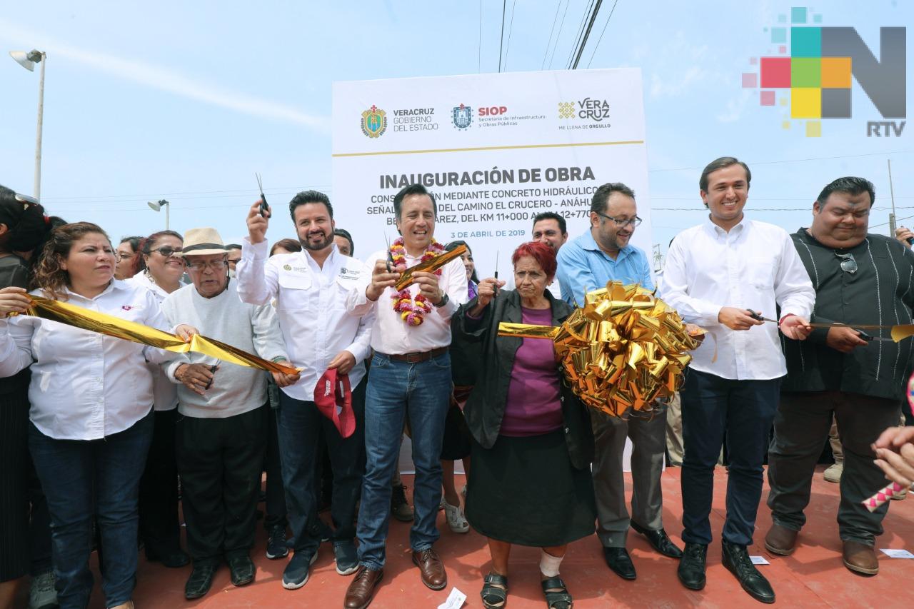 En primer lugar, la construcción con concreto hidráulico del camino El Crucero-Anáhuac-Benito Juárez que, con una inversión de casi 7 millones de pesos, beneficia a más de 24 mil habitantes.