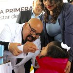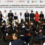 Ante estudiantes y padres de familia, aseguró que, gracias a la vacunación, en México se han erradicado “fantasmas de la muerte” como la tuberculosis y la poliomielitis; por ello, exhortó a los padres de familia a acudir a sus centros de Salud y a los módulos –en los que se desplegarán 11 mil voluntarios- para aplicar las inyecciones correspondientes.