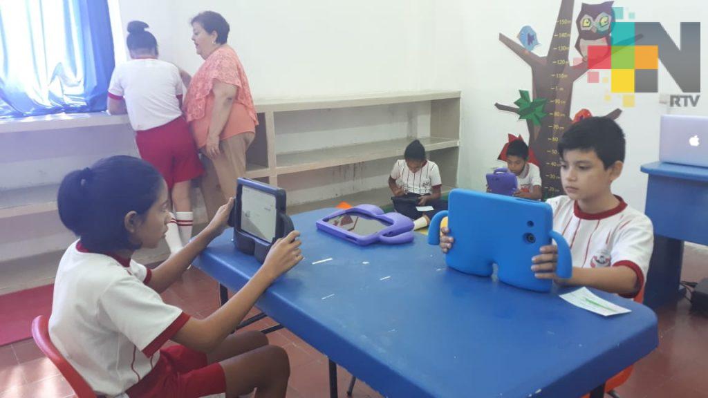 Veracruz, Ver.- En la Escuela Primaria José María Morelos y Pavón de la ciudad de Veracruz fue inaugurada un Aula Hermana bajo la coordinación del COVEICyDET, la cual está equipada con computadoras, tabletas electrónicas y una pantalla para desarrollar el conocimiento científico en los alumnos.