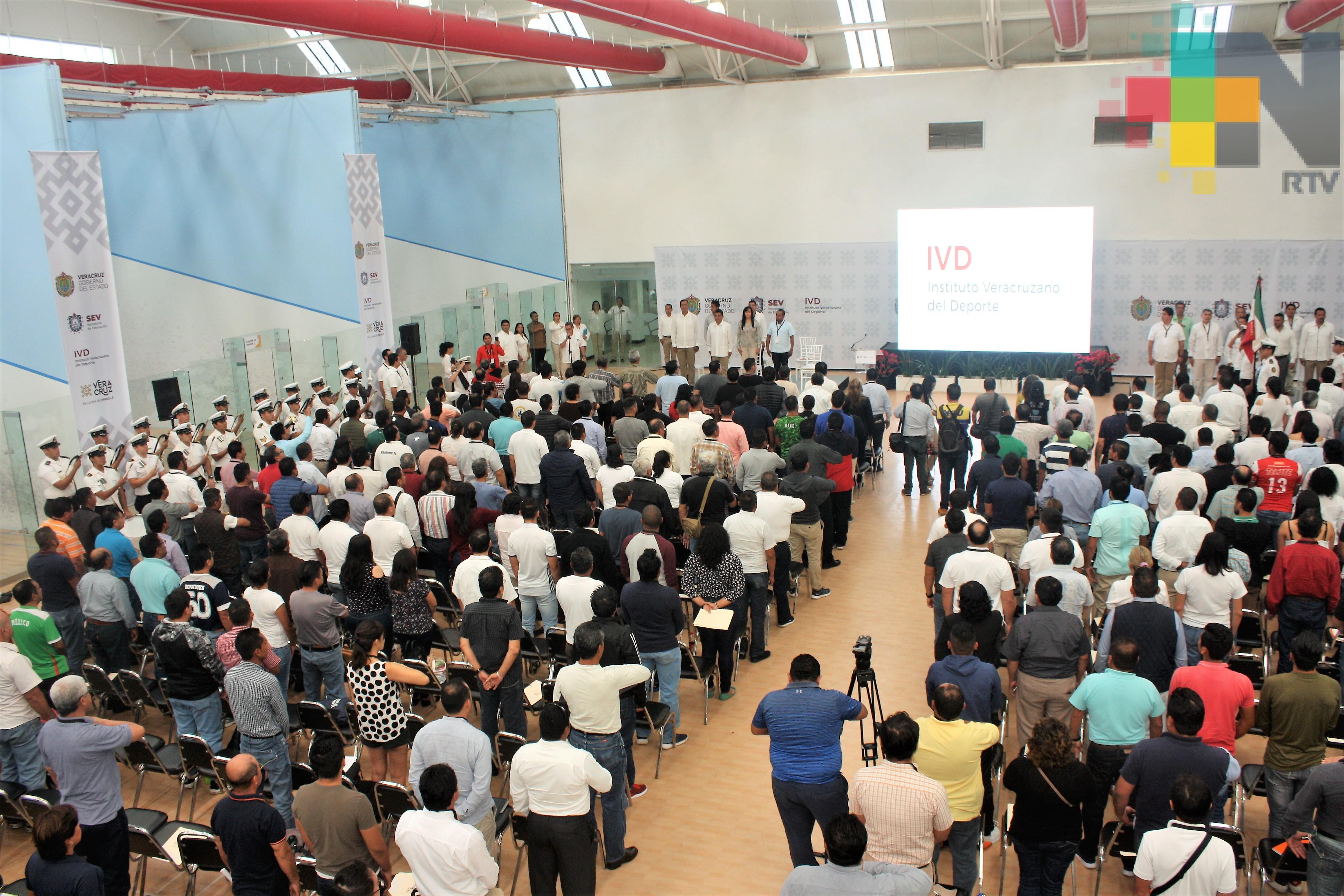 Con la presencia de alcaldes, diputados, así como titulares de Comités Municipales del Deporte, presidentes de Asociaciones Deportivas, atletas, entrenadores, inspectores de educación física, sector educativo y público en general, el director del Instituto Veracruzano del Deporte, David Fernando Pérez Medellín, agradeció la presencia de cada uno de ellos y estableció las bases para un trabajo conjunto y así impulsar el deporte en toda la entidad veracruzana.