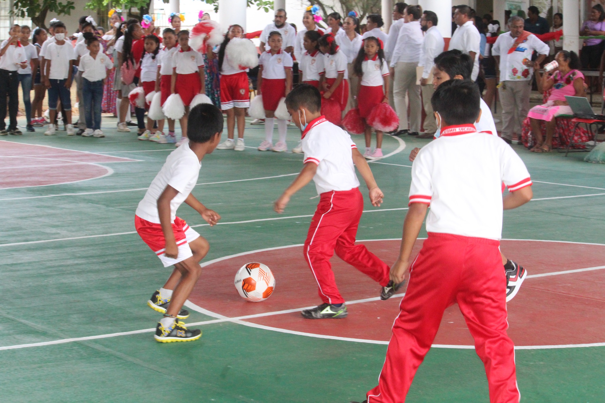 Después del corte del listón, en el nuevo domo se desarrollaron actividades culturales y deportivas, por parte de maestros y alumnos de la escuela primaria “Leona Vicario”.