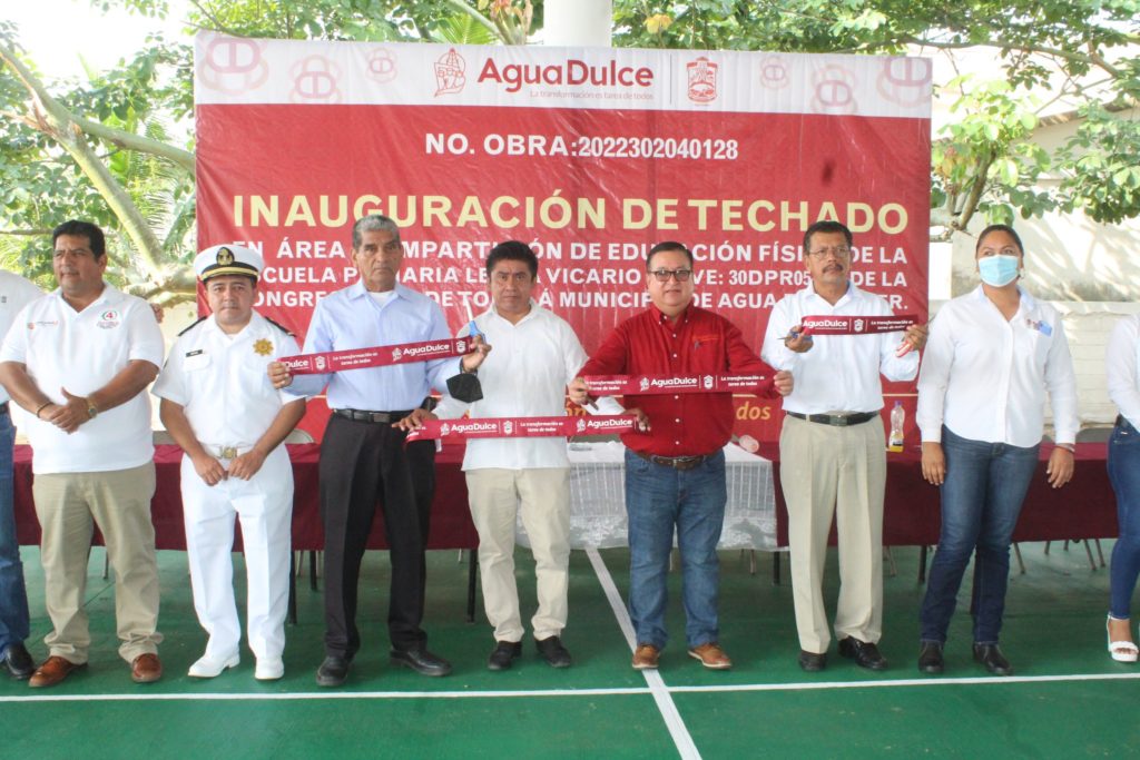 Agua Dulce, Ver. – El alcalde Noé Castillo Olvera, cumplió el sueño de niñas y niños de la escuela primaria “Leona Vicario” en la Congregación de Tonalá, al construirles un domo y una cancha de usos múltiples, que anhelaban desde hace años.