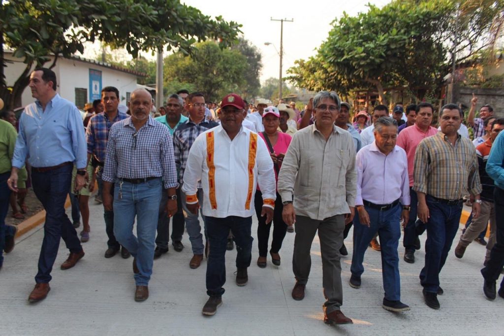 Otatitlán, Ver.- La pavimentación de la calle Adolfo López Mateos fue inaugurada por el secretario de Gobierno, Eric Cisneros Burgos, en este municipio, con la presencia del alcalde Abel Cuevas Palmero.