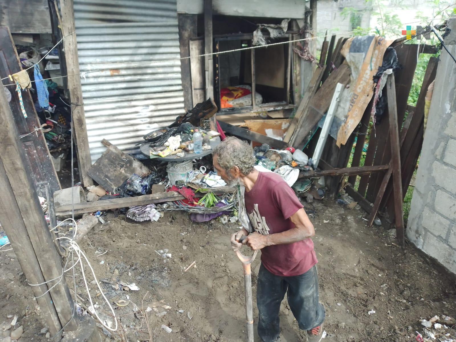 Miguel Ángel Márquez dijo que desde que falleció su esposa hace 18 años, aproximadamente, vive solo, trabaja recogiendo plásticos y materiales, además de auxiliar en labores en viviendas y comercios. Sus 4 hijos lo visitan a veces, pero prácticamente está por su cuenta, contando con los vecinos que también lo ayudan.
