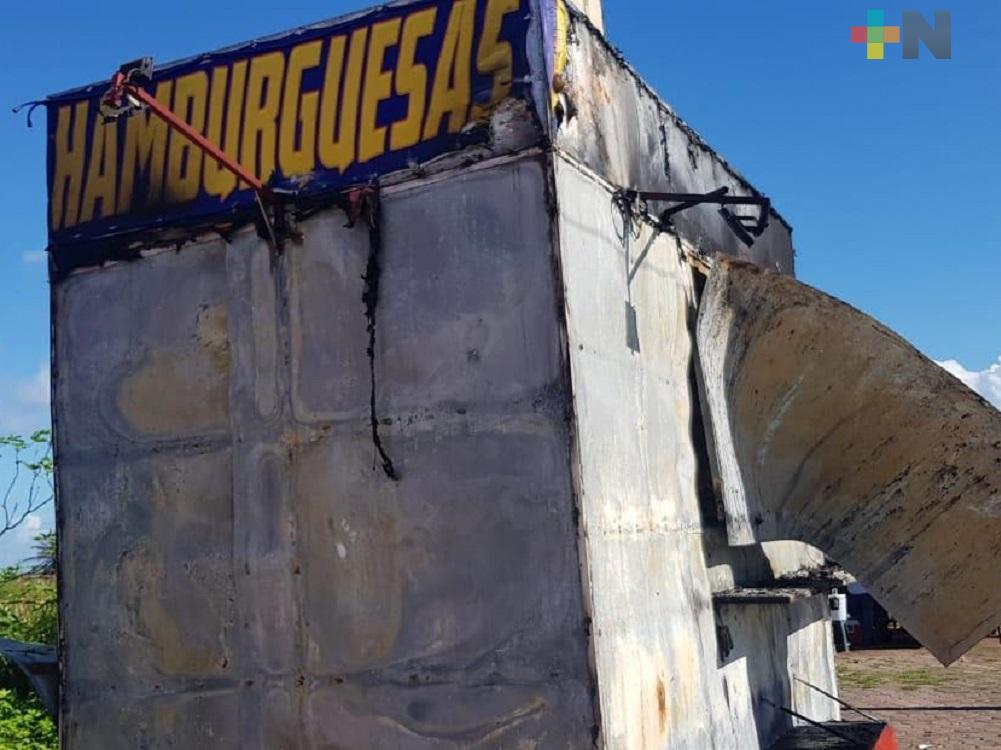 Incendio consume remolque de hamburguesas en Coatzacoalcos, sin reportarse personas lesionadas