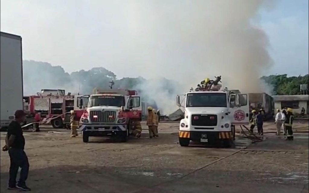 Coatzacoalcos, Ver.- Varias unidades pesadas y cajas de tráiler se incendiaron en las inmediaciones del Complejo Petroquímico Pajaritos de Coatzacoalcos.