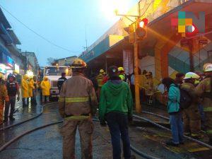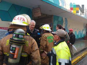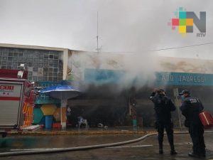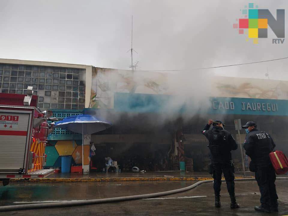 Xalapa, Ver.- Pasada las cuatro de la tarde de este martes un comercio de comida ubicado en el interior del Mercado Jáuregui de Xalapa se incendió debido a la chispa de uno de los comales que alcanzó un tanque de gas de 20 litros, informó el Comandante del Heróico Cuerpo de Bomberos de Xalapa, José Luis Acosta.