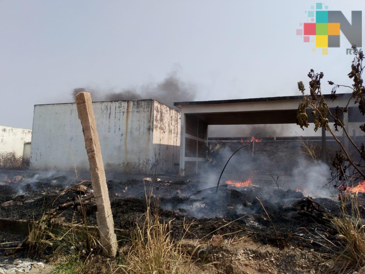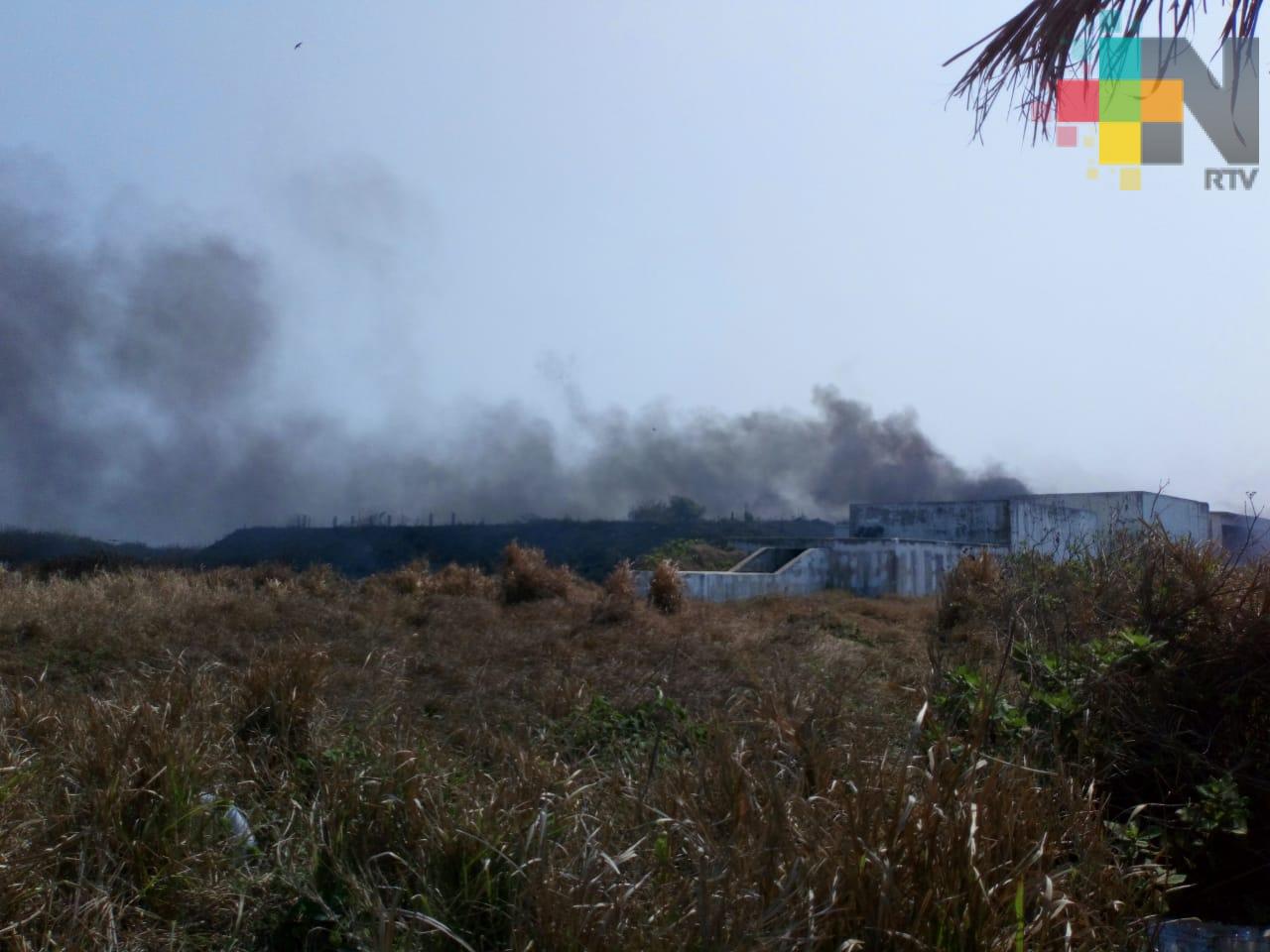 Coatzacoalcos, Ver.- Un incendio de gran dimensión, generado en un cárcamo de bombeo de la colonia Lomas de Barrillas generó una inmensa cortina de humo negro por el plástico que se consumió.