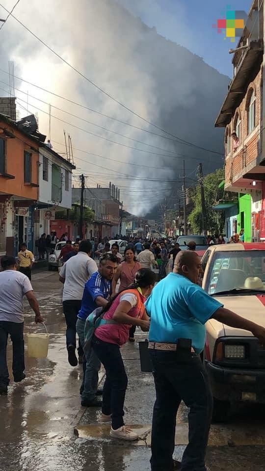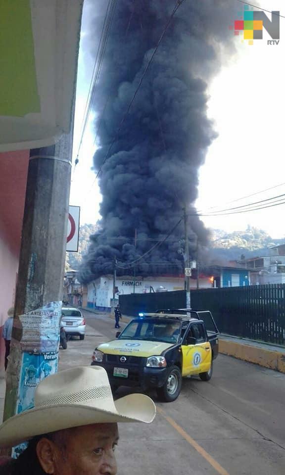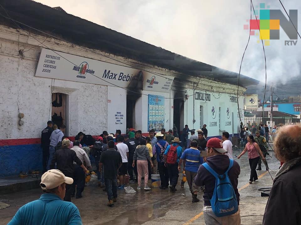 Incendio en Zongolica consume tres comercios; Bomberos controlan el siniestro sin reporte de lesionados
