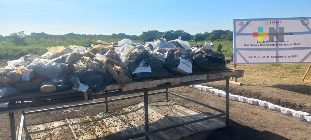 Veracruz, Ver.- La Fiscalía General de la República (FGR) a través de la Subprocuraduría Especializada de Control Regional (FECOR) en su delegación Veracruz, en coordinación con la Secretaría de Marina (Semar), incineró 257 kilos 800 gramos 383 miligramos de distintos narcóticos y destruyó 44 objetos del delito, relacionados con diversas carpetas de investigación y averiguaciones previas.