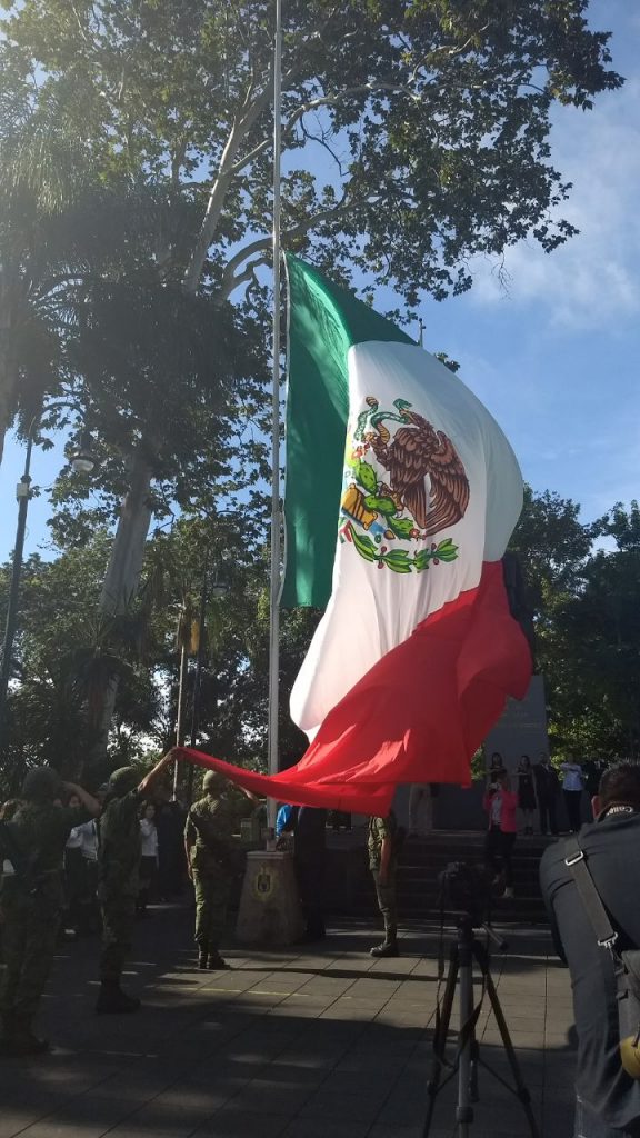 Xalapa, Ver.- Realiza la Secretaría de Gobierno la incineración y reposición de la Bandera Nacional que desde hace cinco años ondeaba en el Parque Benito Juárez García, en el corazón de Xalapa.