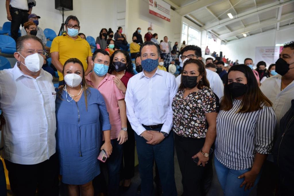 Tuxpan, Ver.- El Gobernador del Estado, Cuitláhuac García Jiménez, encabezó la entrega de tarjetas de la Pensión para el Bienestar del Adulto Mayor en este puerto de Tuxpan en compañía del delegado de Bienestar, Manuel Huerta Ladrón de Guevara.