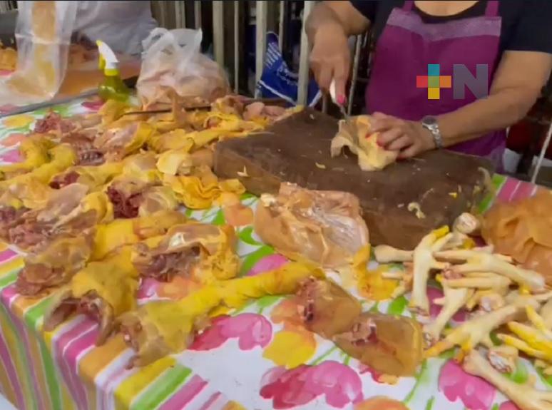 En esta semana, el precio del pollo se ha incrementado en al menos un peso diario por kilogramo, expresó doña Valentina García, vendedora de este producto, quién dijo que actualmente el kilogramo de maciza de pollo está en 78 pesos.