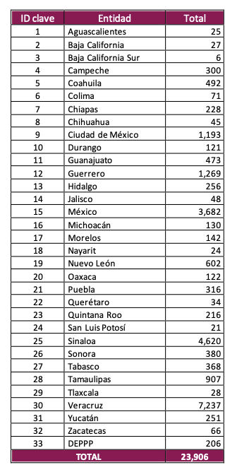 Por estado, estos son los datos preliminares: