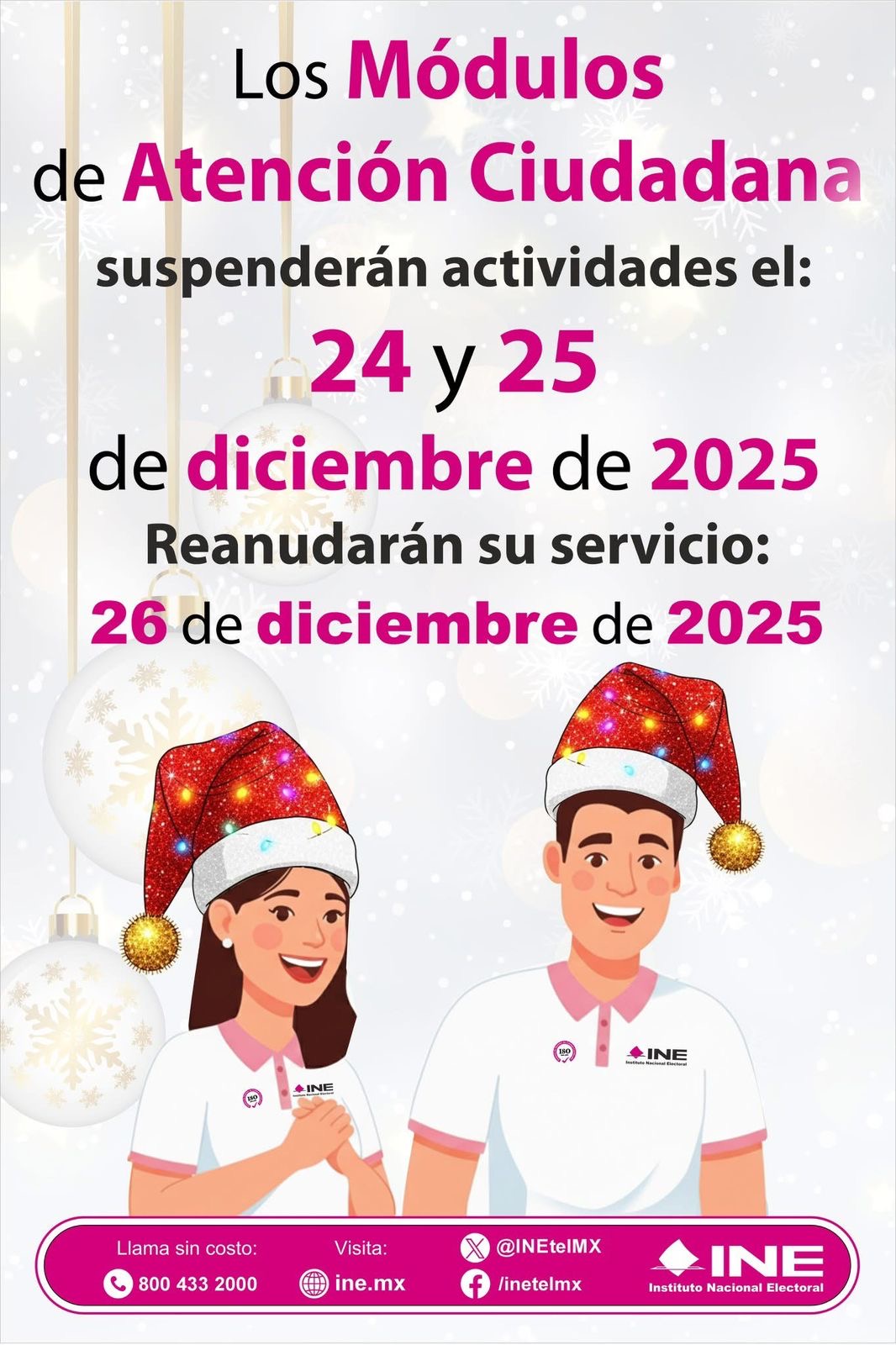 Coatzacoalcos, Ver.- Los módulos del Instituto Nacional Electoral (INE) tanto en Coatzacoalcos como en Agua Dulce suspenderán actividades con motivo de las celebraciones de nochebuena y navidad.