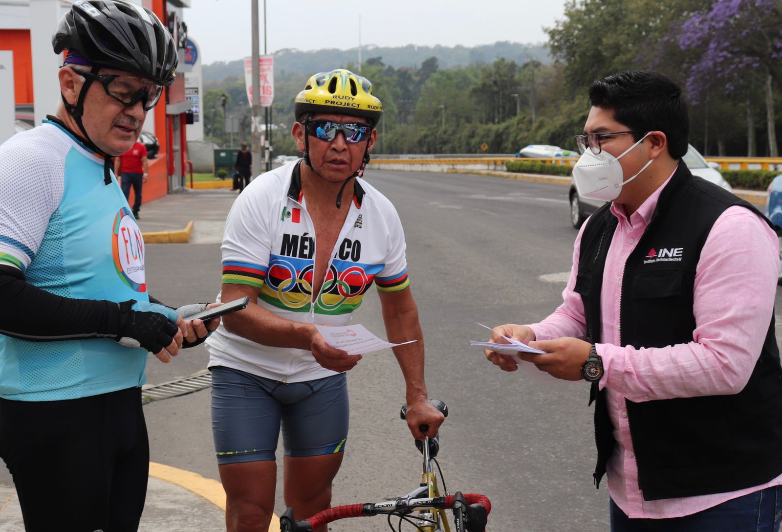 Xalapa, Ver., 5 de abril de 2022. Personal adscrito al Consejo Local y a los 20 consejos distritales del Instituto Nacional Electoral (INE) en el Estado de Veracruz, han entregado más de 62 mil volantes en todos los rincones de la entidad con el objetivo de dar amplia difusión a la liga Ubica tu casilla, misma que se encuentra disponible, desde el pasado 26 de marzo, en el portal ine.mx, para que las veracruzanas y veracruzanos puedan participar en el primer ejercicio de Revocación de Mandato que tendrá lugar el próximo domingo 10 de abril.