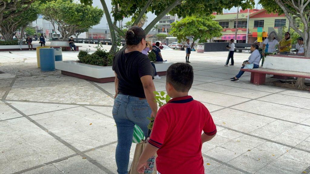 Infantes y madres de familia promueven el cuidado de los árboles en Coatzacoalcos