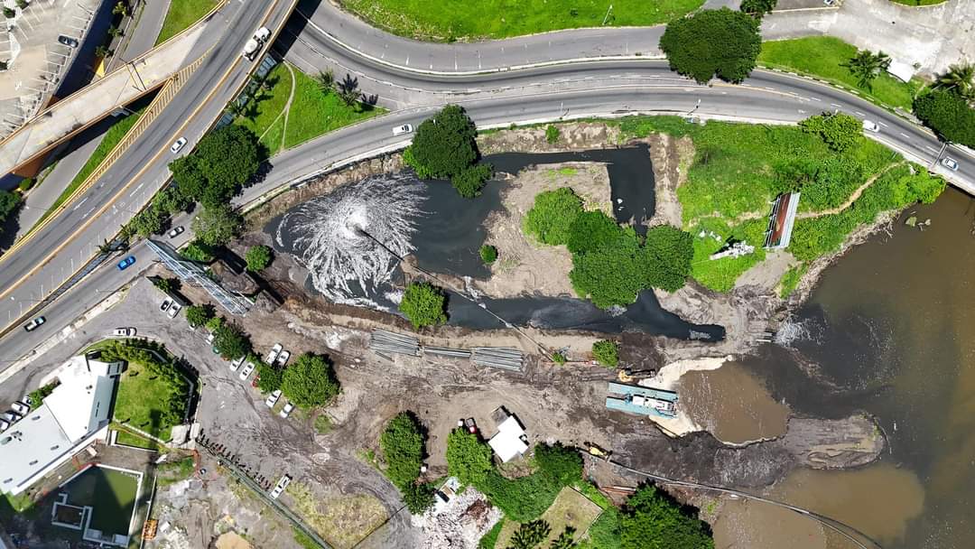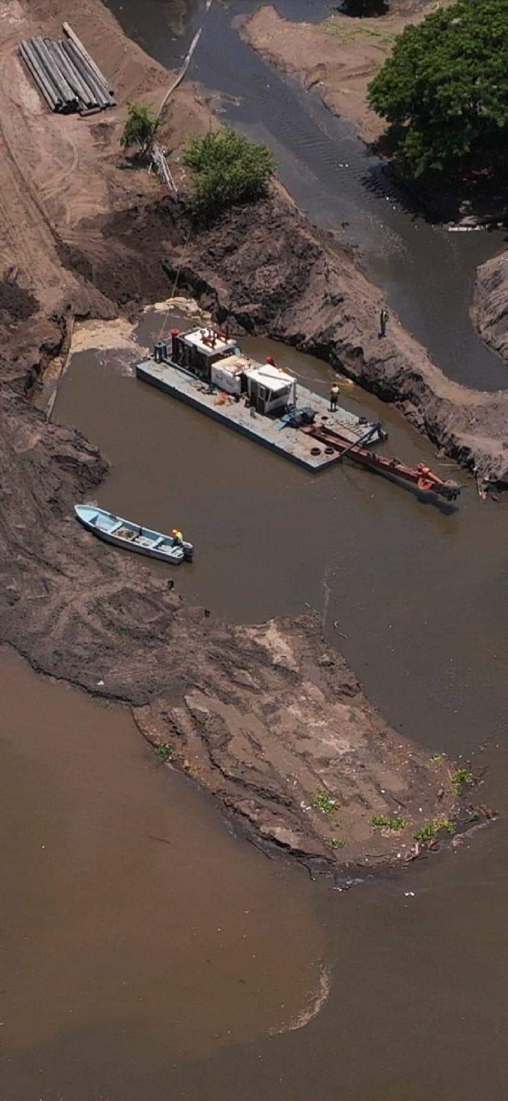 Asimismo compartió algunas imágenes en las que se observa a las máquinas que están trabajando en el afluente.