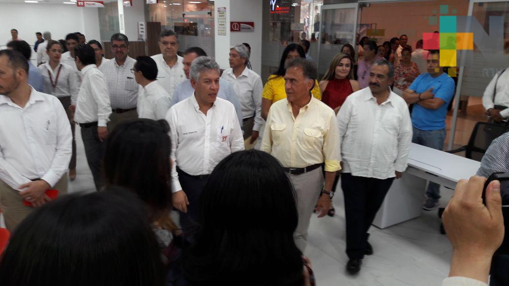 El gobernador y el titular del Instituto del Fondo Nacional de la Vivienda para los Trabajadores (Infonavit), David Penchyna Grub recorrieron este lunes las nuevas instalaciones del Centro de Servicio de la institución, que quedó ubicado en Plaza Mocambo de Boca del Río.