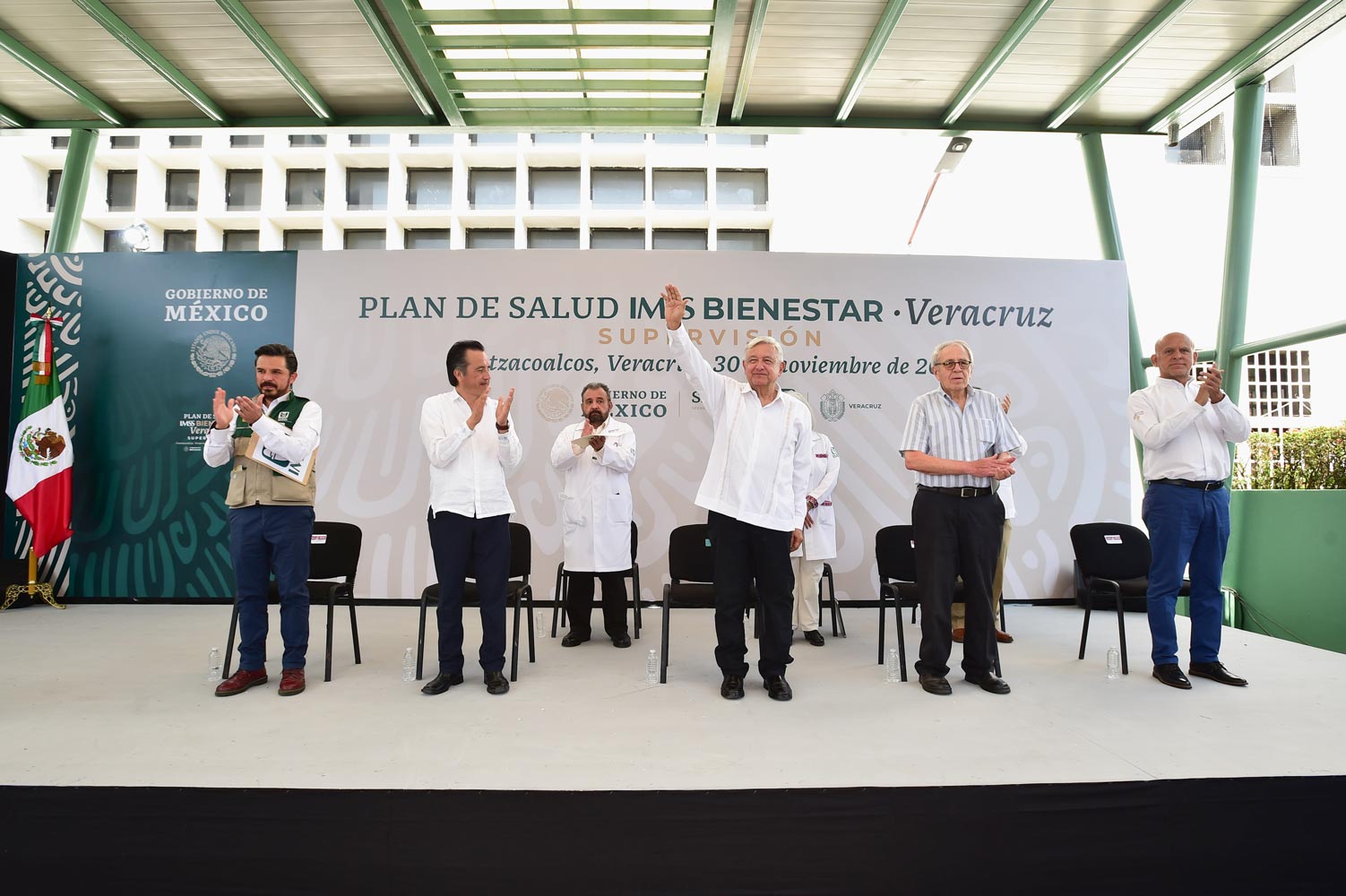 Acompañaron al presidente, el secretario de Salud, Jorge Alcocer Varela; el director general de Instituto Mexicano del Seguro Social, Zoé Robledo Aburto; el director general del Instituto de Salud para el Bienestar, Juan Antonio Ferrer Aguilar; la directora general de los Servicios de Salud del Instituto Mexicano del Seguro Social para el Bienestar, Gisela Lara Saldaña; el director del Hospital IMSS Bienestar Valentín Gómez Farías, Gaspar Antonio Vivas Castillo y el presidente municipal de Coatzacoalcos, Amado Jesús Cruz Malpica.