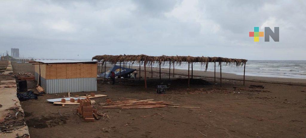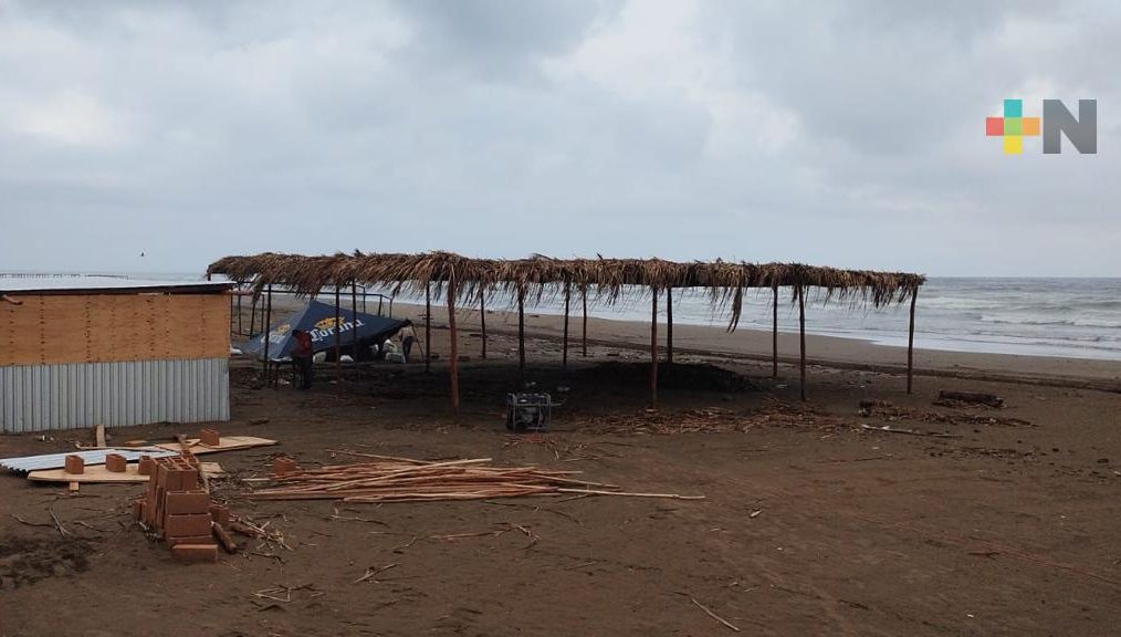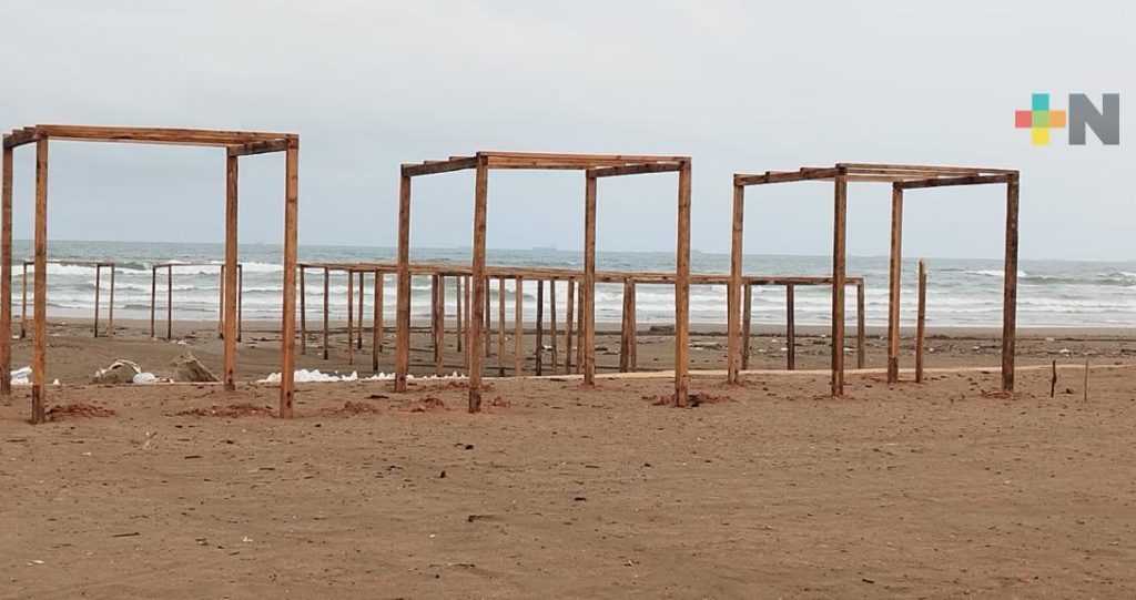 Inicia instalación de enramas y terrazas en playa de Coatza por Semana Santa