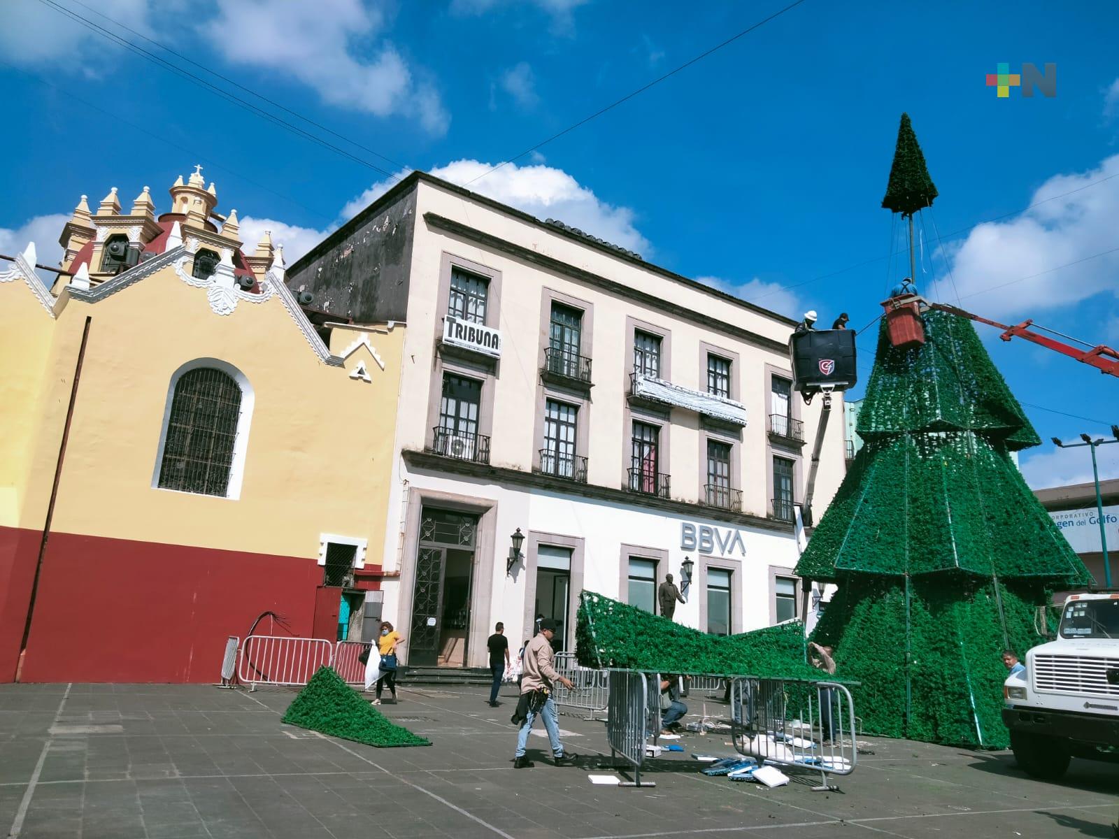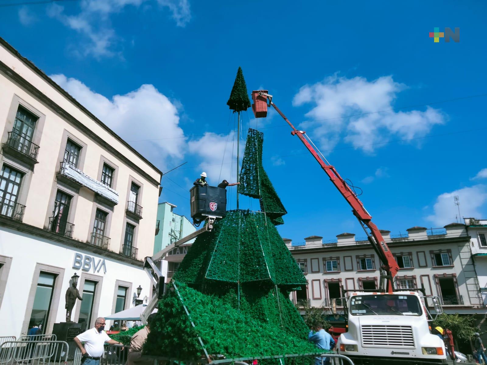Inicia instalación de pino navideño en centro de Xalapa