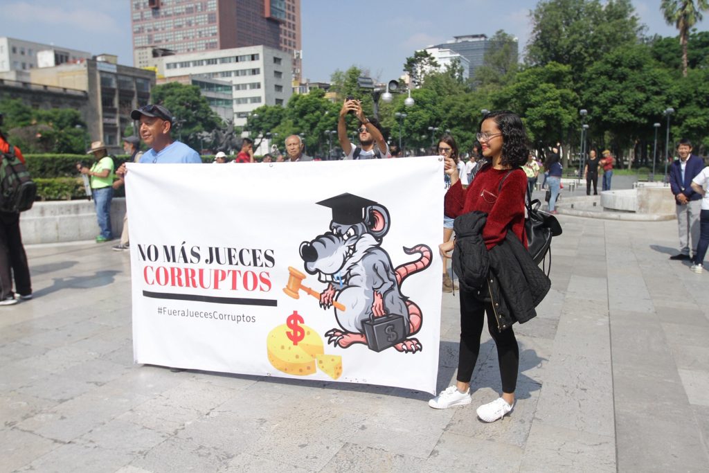 México.- Diversas organizaciones realizan una manifestación frente a la sede de la Suprema Corte de Justicia de la Nación (SCJN) en demanda de la destitución de jueces acusados de casos de corrupción.