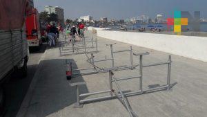 Veracruz, Ver.- Inició la instalación de las gradas del Carnaval de Veracruz 2019, a la altura de la playa Regatas.