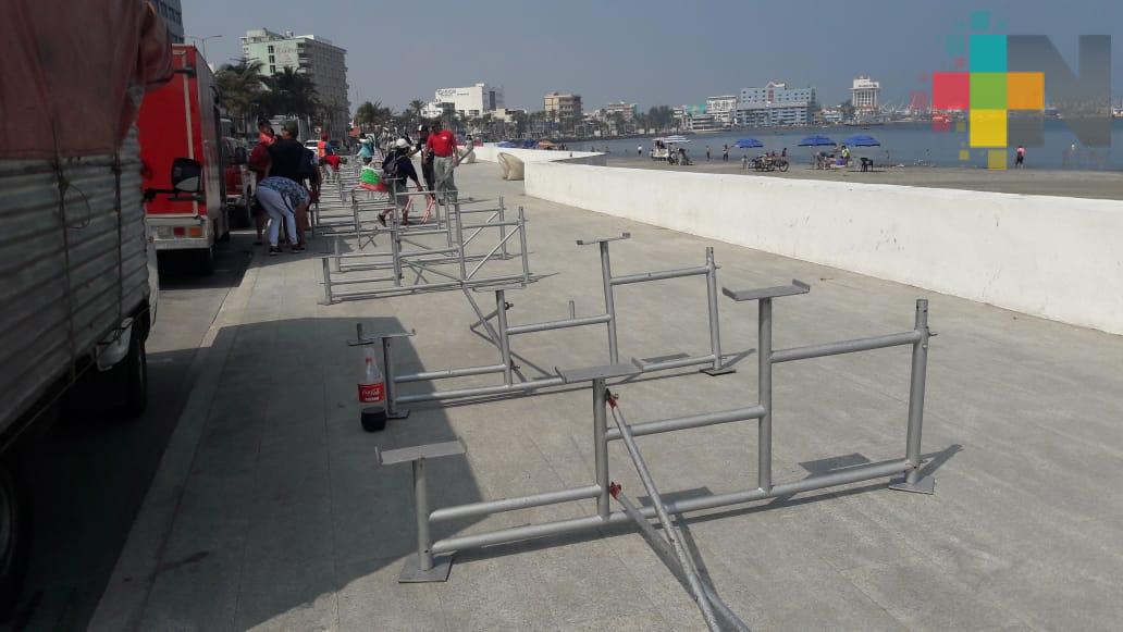 Veracruz, Ver.- Inició la instalación de las gradas del Carnaval de Veracruz 2019, a la altura de la playa Regatas.