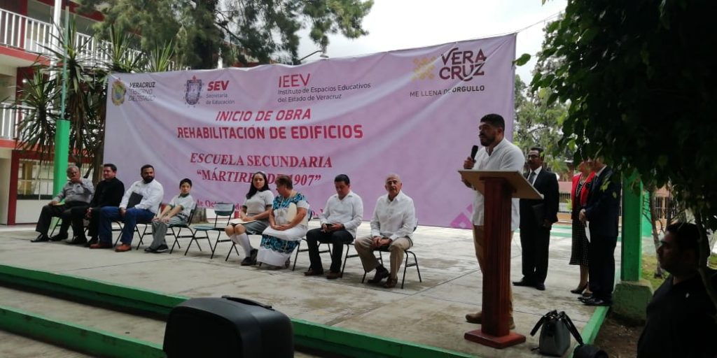 Río Blanco, Ver . El Secretario de Educación, Zenyazen Escobar García junto con el director del Instituto de Espacios de Educativos, Ricardo García, dieron inicio a los trabajos de rehabilitación en la escuela Secundaria General «Mártires 1907» ubicada en Río Blanco.