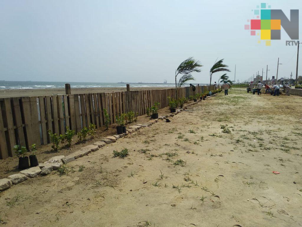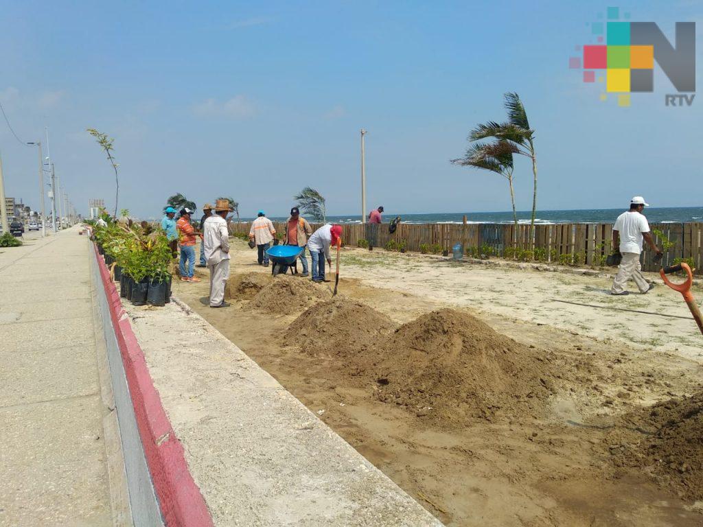 Coatzacoalcos, Ver.- Comenzó la siembra de plantas en el malecón costero, como parte del proyecto para evitar que salga la arena hacia la zona de tránsito cuando se presenta un evento de norte.