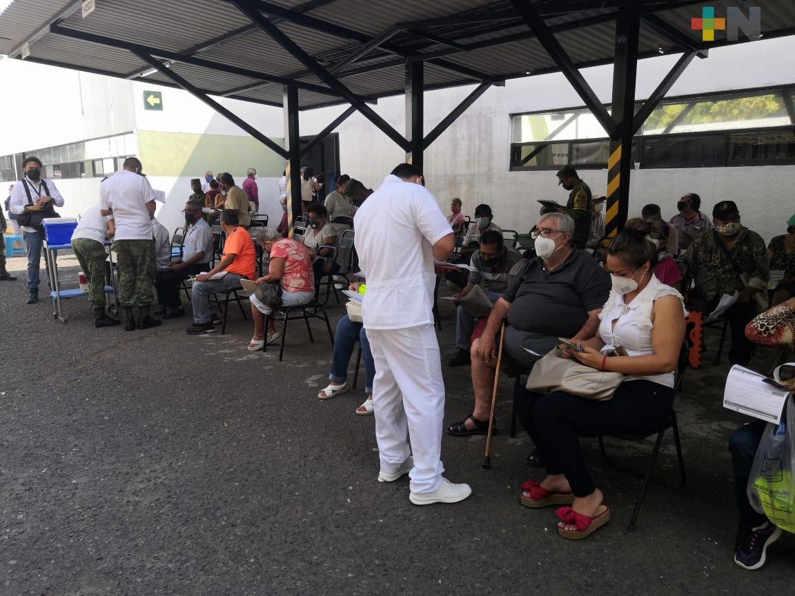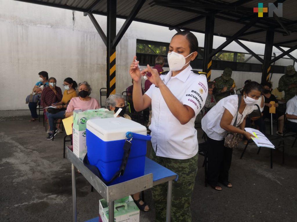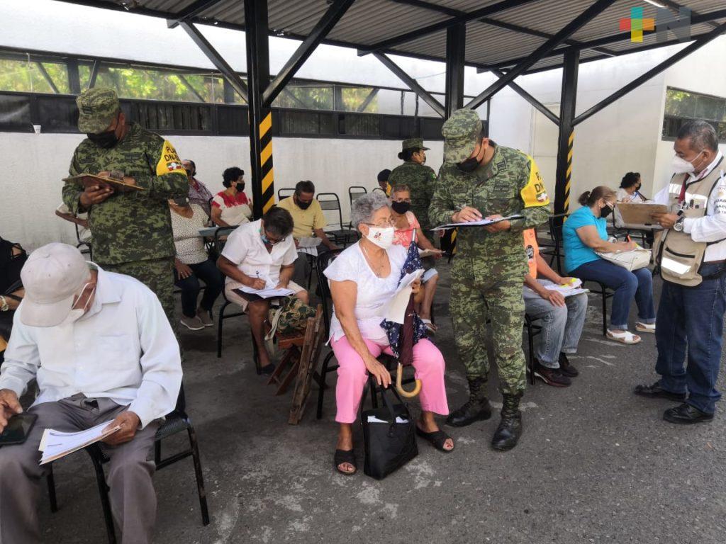 Boca del Río, Ver.- En el módulo del Hospital Militar de La Boticaria, la jornada de vacunación anticovid tuvo un buen arranque, de manera ordenada y fluida las personas mayores fueron recibiendo la dosis.