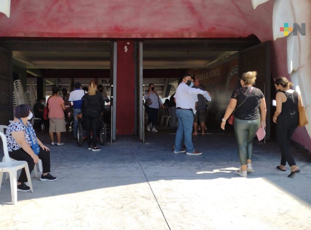 Veracruz, Ver.- Arrancó la vacunación refuerzo antiCovid para personas de 40 a 59 años en el municipio de Veracruz desde el estadio de fútbol Luis «Pirata» de la Fuente.