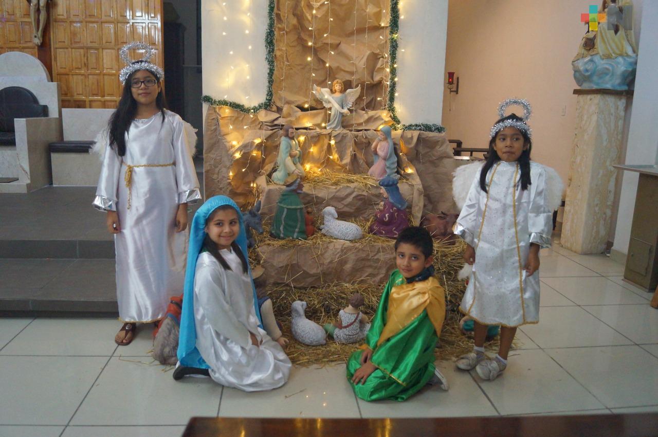 Niños y niñas representan el peregrinar de María y José de Nazaret pidiendo alojamiento por una sola noche para dar a luz a Jesús, son nueve días de posadas que simboliza los nueve meses de embarazo de María.