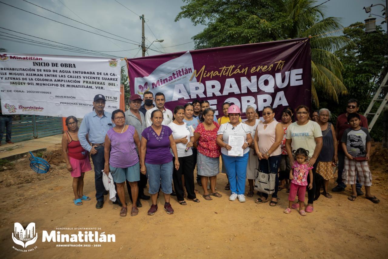 Minatitlán, Ver. — La presidenta municipal, Carmen Medel Palma, acompañada de regidores dieron el banderazo de inicio de los trabajos para introducir la red de agua potable en la ampliación Praderas del Jagüey, la cual tendrá una inversión superior a los 539 mil pesos.