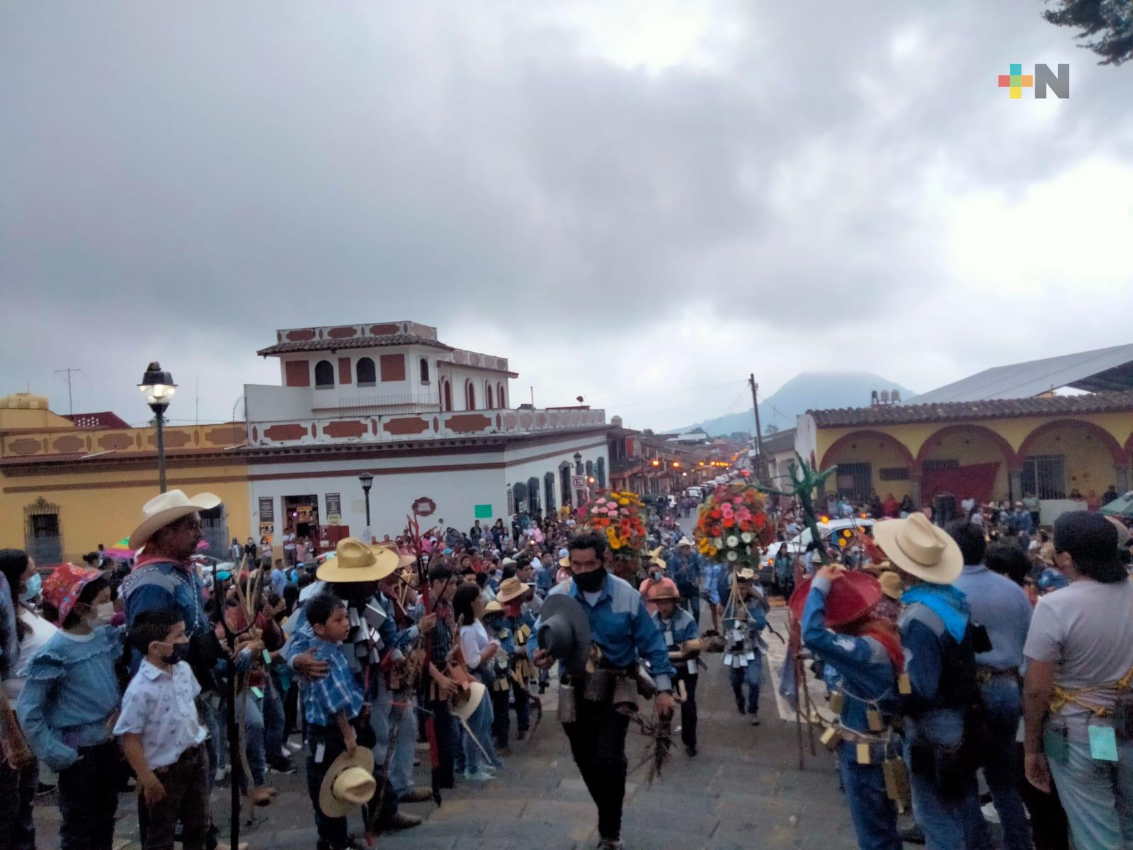 Xico, Ver.- Niños, mujeres, jóvenes y adultos, prácticamente de todas las edades salieron la tarde y noche de este sábado a las calles de Xico con decenas de cencerros colgados del cuerpo, algunos sosteniendo una vara, paliacate al cuello y con sombrero, a manera de vaqueros.