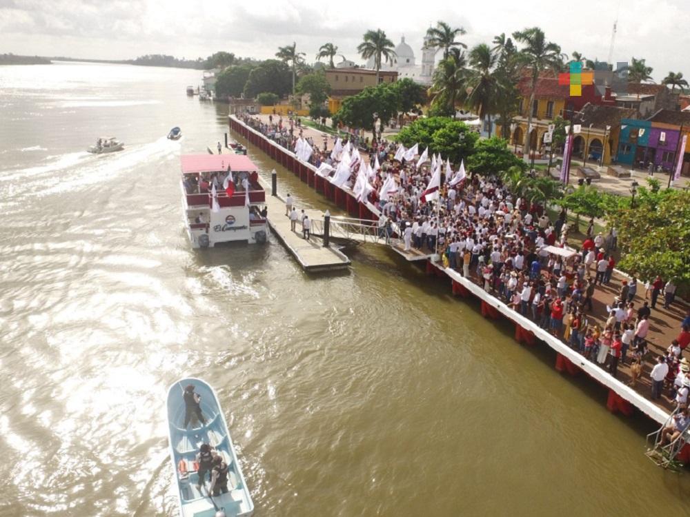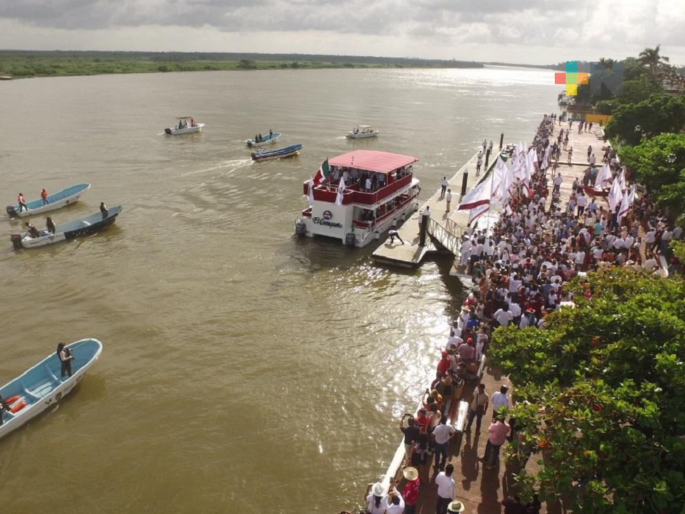 El viaje de dicho catamarán «El Cuenqueño» inició en Alvarado por el afluente citado, transportando al Ejecutivo del estado quien fue acompañado también por la secretaria de Turismo y Cultura, Xóchitl Arbesú Lago, en viaje de ensueño que fue animado por grupo de jaraneros, siendo recibidos por el alcalde de Tlacotalpan, Christian Romero Pérez.
