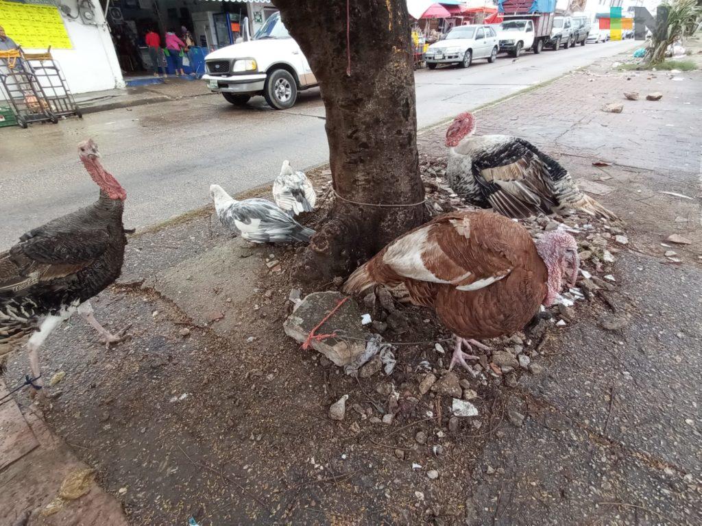 Coatzacoalcos, Ver.- Desde este martes, inició la venta de pavos, guajolotes, pollos y patos criados en rancho a un costado del mercado Morelos de Coatzacoalcos para la tradicional cena de Nochebuena.