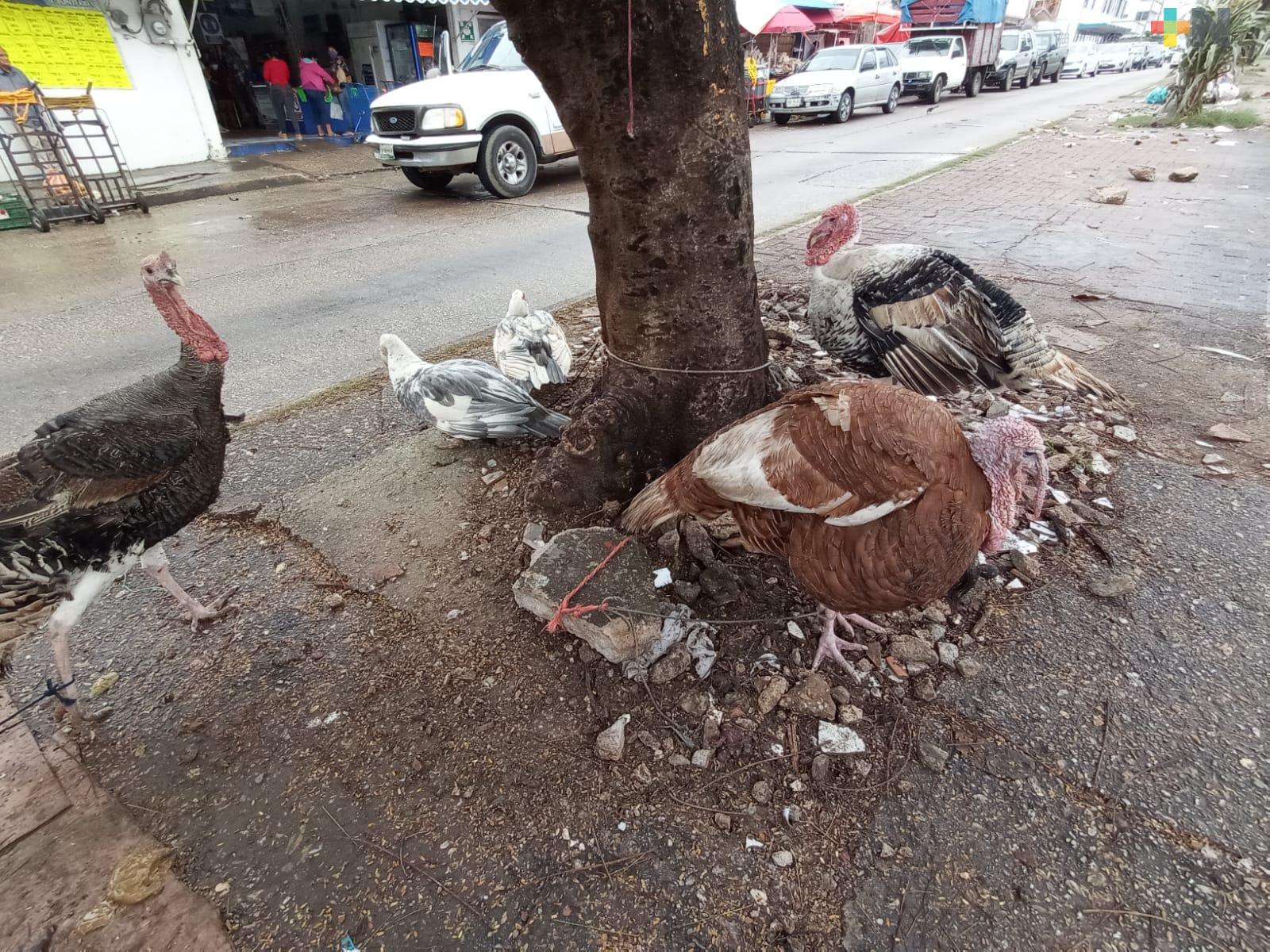 Coatzacoalcos, Ver.- Desde este martes, inició la venta de pavos, guajolotes, pollos y patos criados en rancho a un costado del mercado Morelos de Coatzacoalcos para la tradicional cena de Nochebuena.