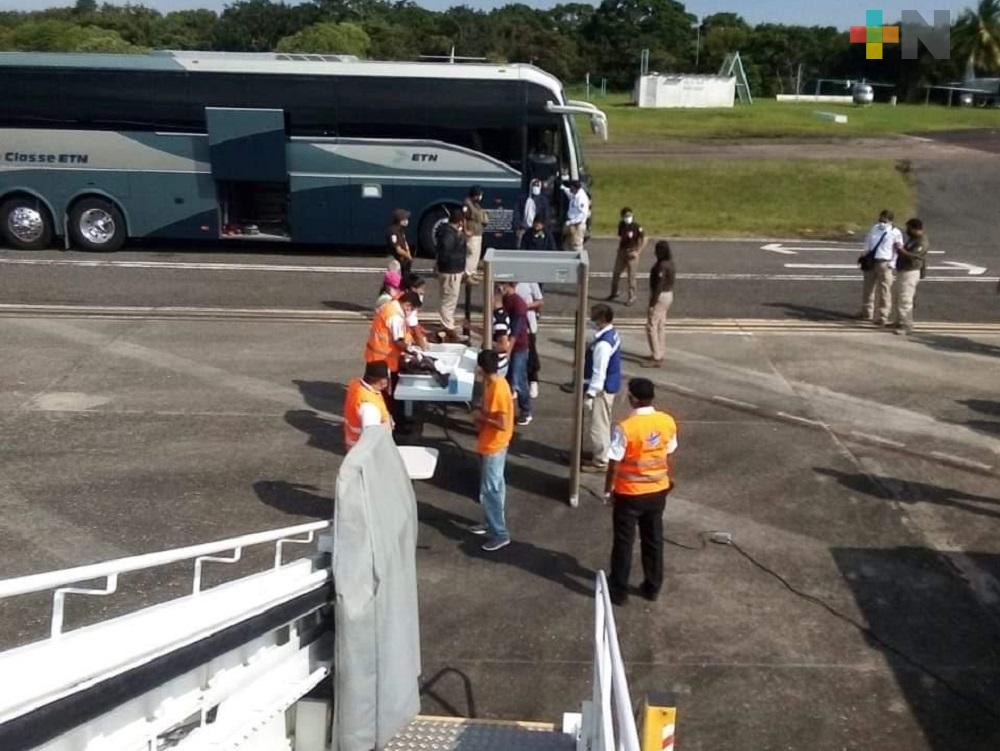 Coatzacoalcos, Ver.- Desde el aeropuerto de Minatitlán, el Instituto Nacional de Migración (INM) repatrió a 136 hondureños que no comprobaron su estancia regular en México.