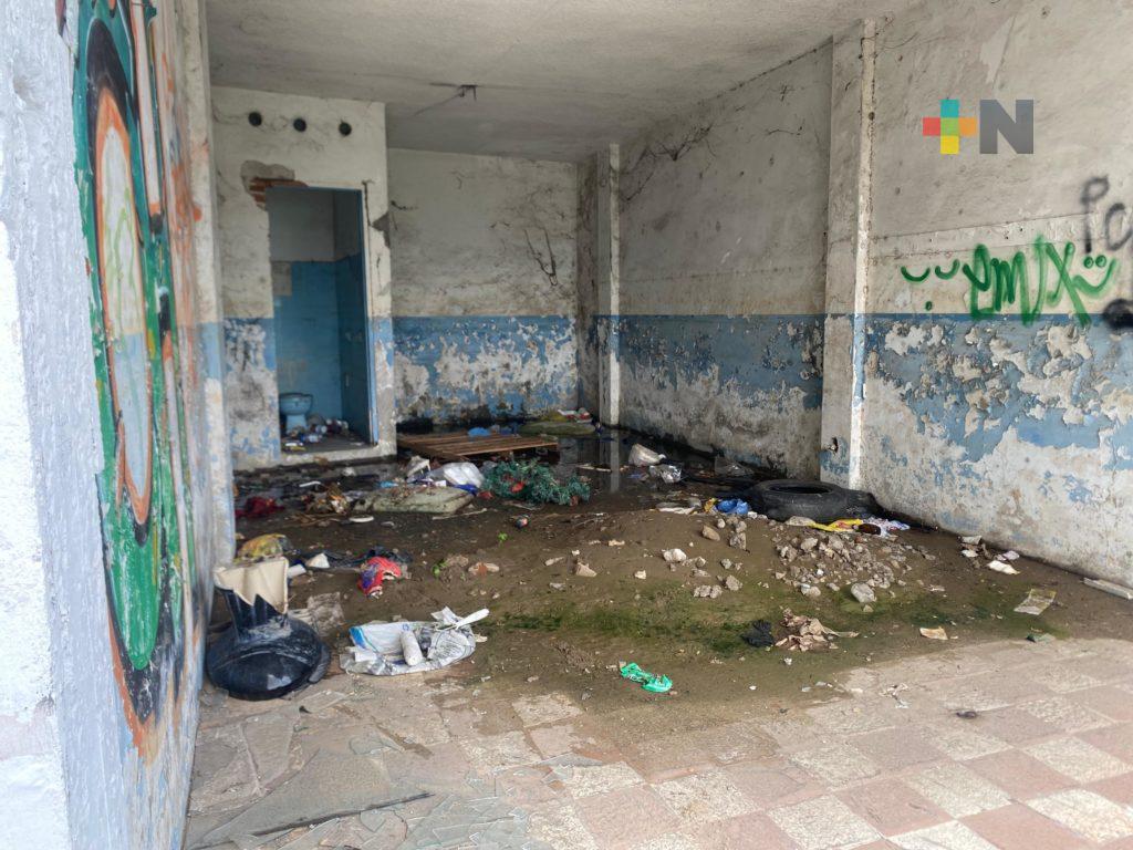 Veracruz, Ver.- Un inmueble abandonado en el fraccionamiento Floresta, que solía ser una plaza comercial, ahora se ha convertido en un problema grave para vecinos, debido a su uso como basurero clandestino.