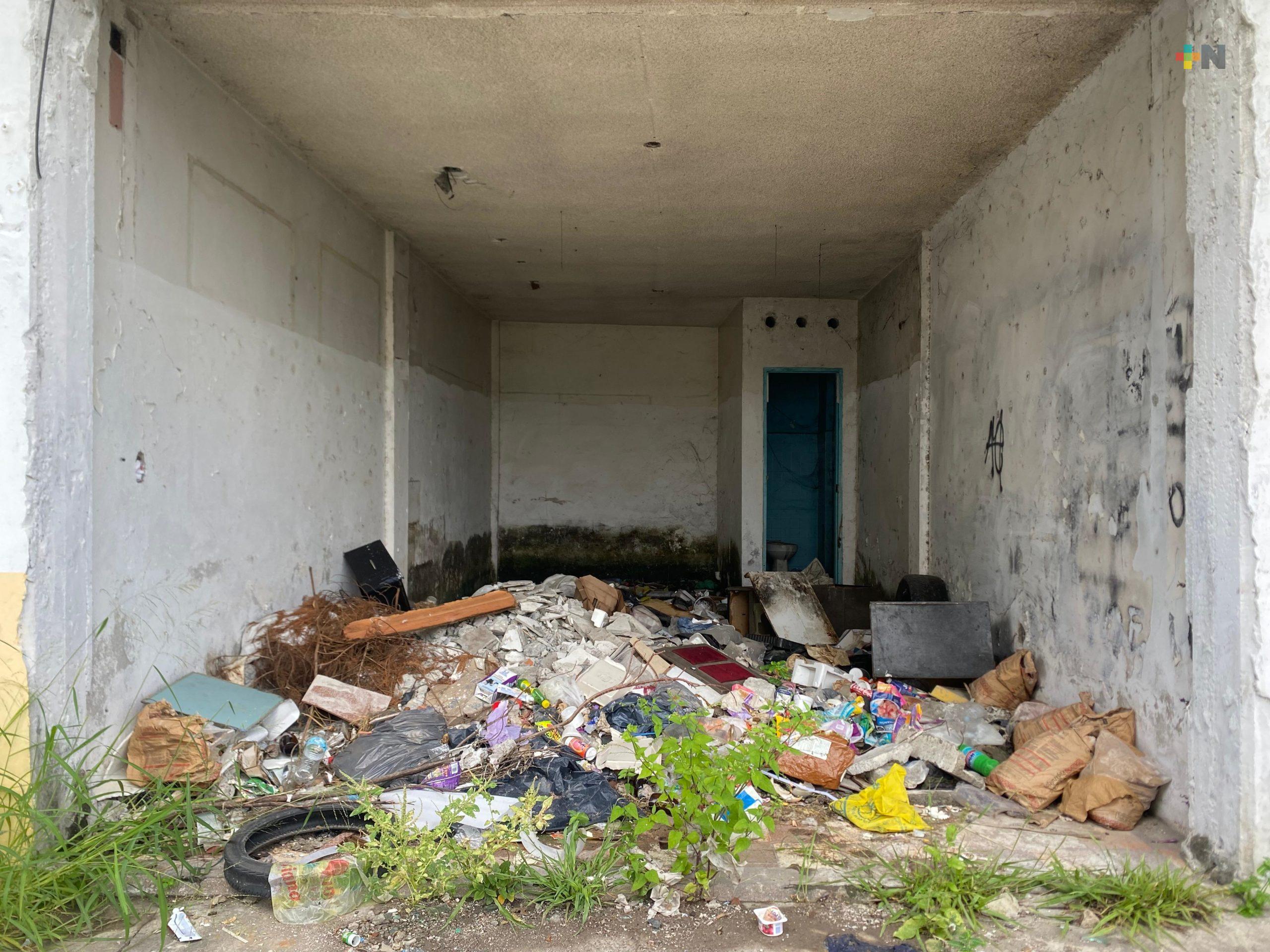Veracruz, Ver.- Un inmueble abandonado en el fraccionamiento Floresta, que solía ser una plaza comercial, ahora se ha convertido en un problema grave para vecinos, debido a su uso como basurero clandestino.