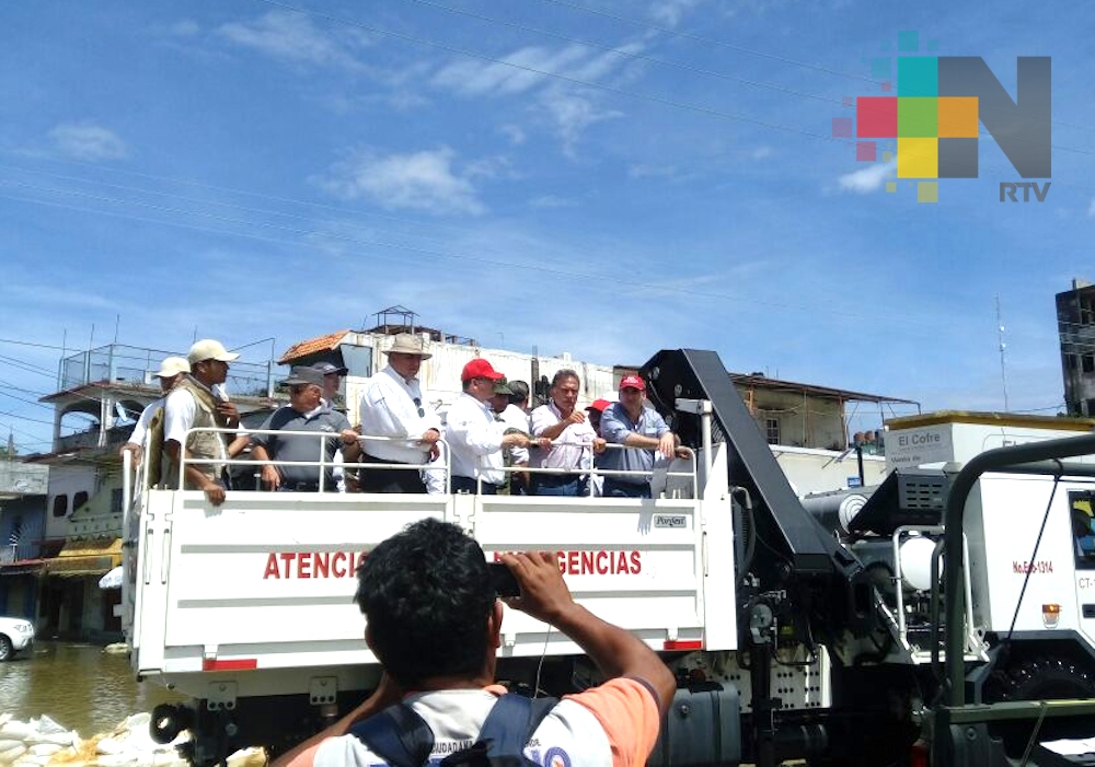 Recorre gobernador Yunes zona afectada por inundaciones en Minatitlán