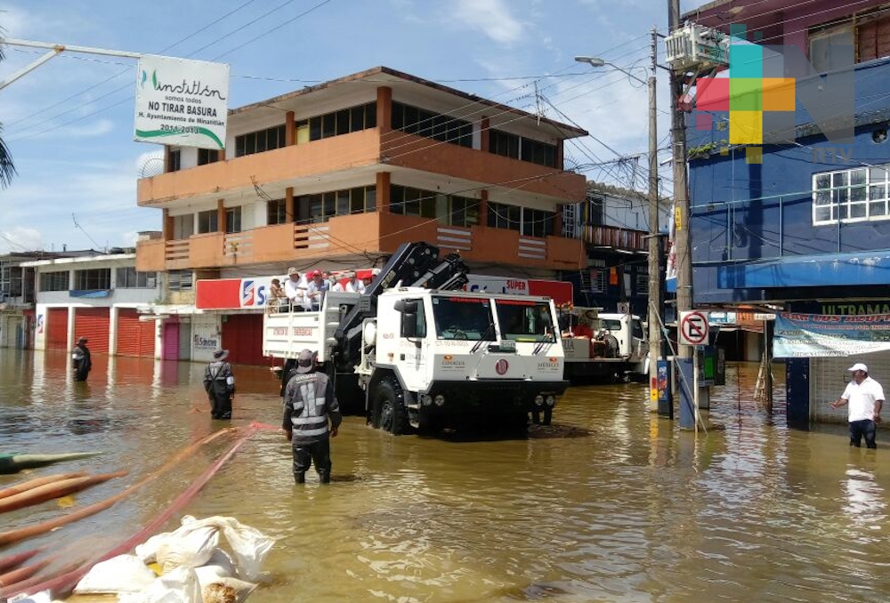 «Hay que esperar a que bajen los niveles del agua para tener un dictamen pericial de la posible afectación al tablestacado como a la zona del malecón de Minatitlán y aclarar que sólo la parte baja de la ciudad está inundada, donde el nivel del agua ya ha ido disminuyendo poco a poco, y agradezco al Ejército Mexicano y a todos los que han participado» detalló.