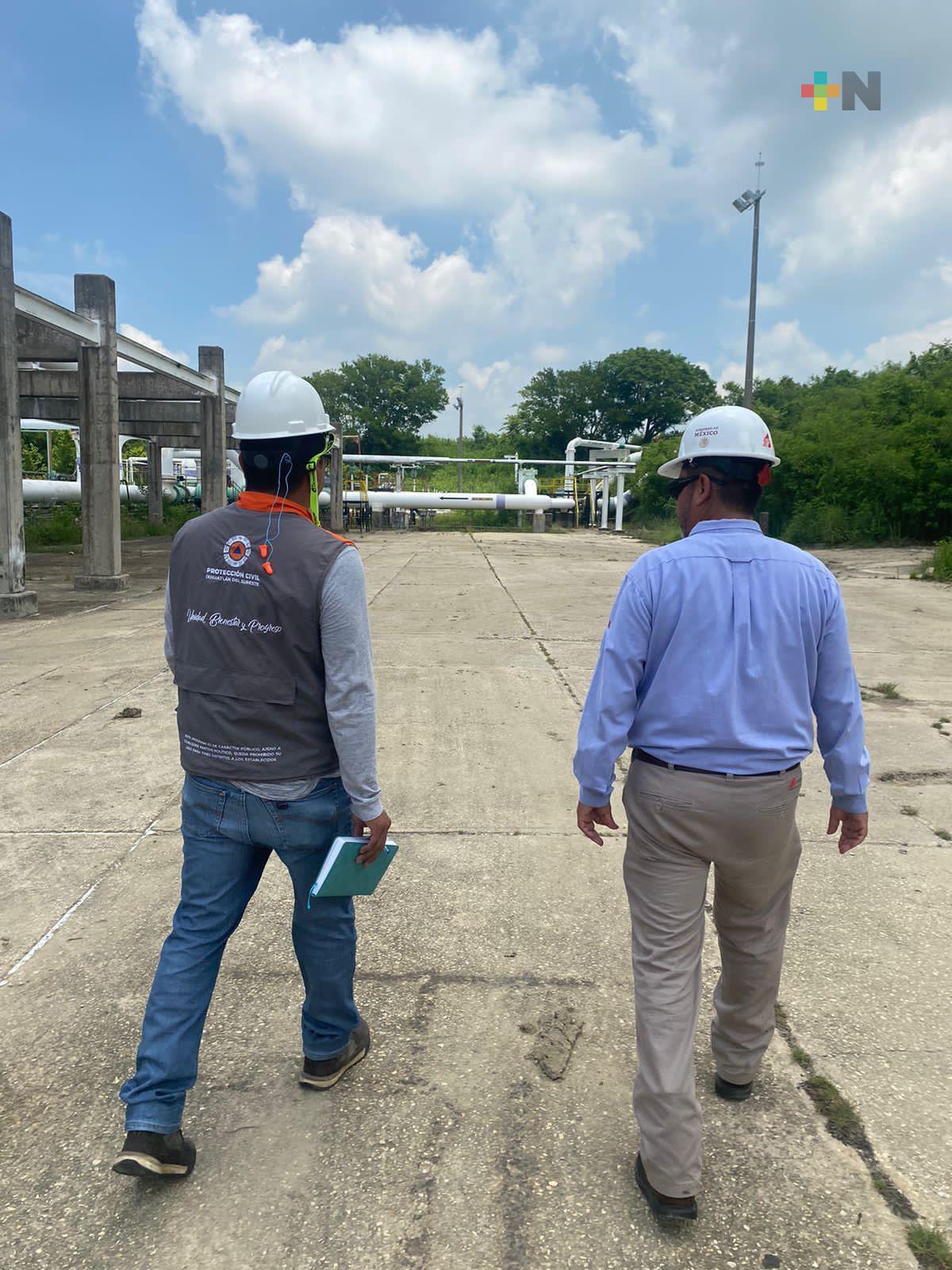 El personal de la Dirección de Protección Civil Municipal recorrió las instalaciones en compañía de los trabajadores de Pemex.