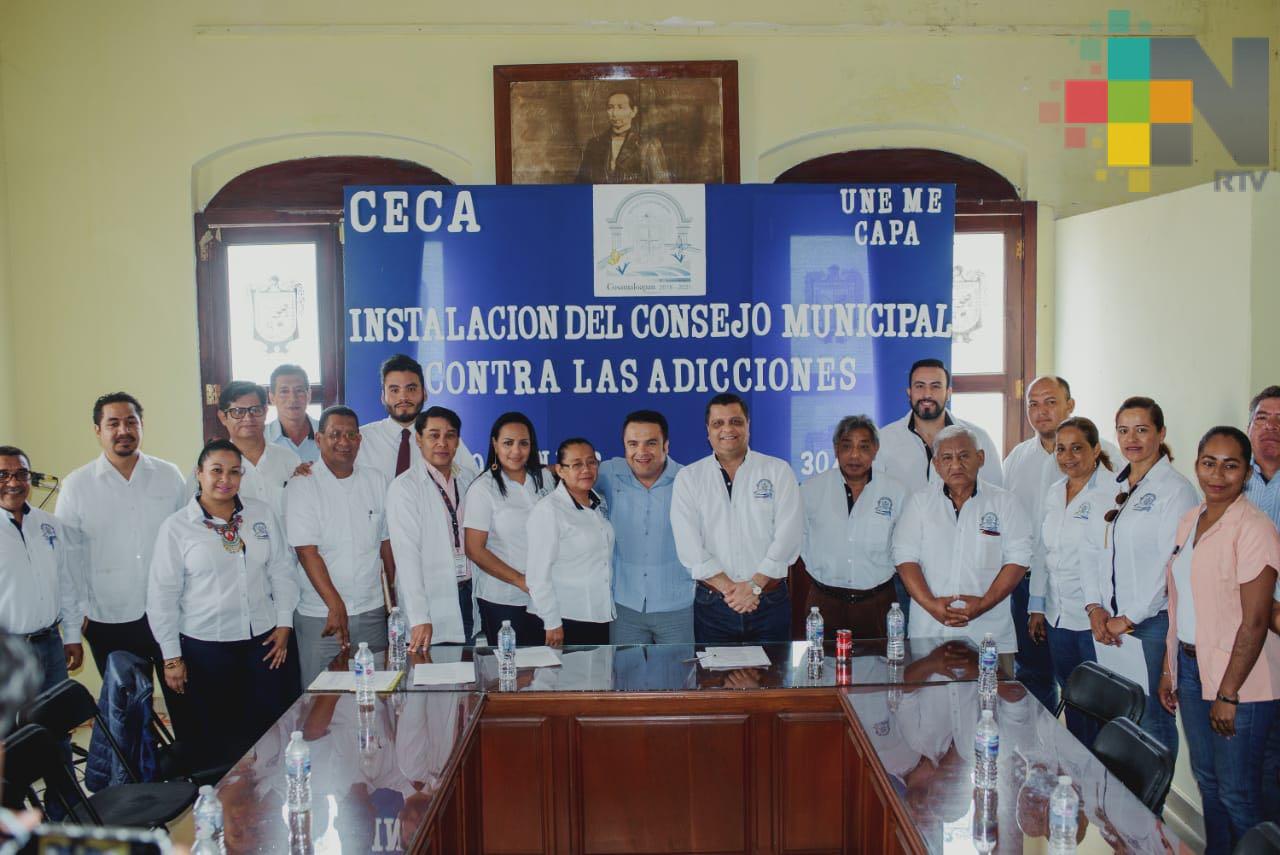 Cosamaloapan, Ver.- Con el objetivo de coordinar y promover acciones para combatir los problemas de salud pública causados por el abuso de bebidas alcohólicas, el consumo de tabaco, la farmacodependencia y la adicción a otras sustancias psicoactivas, el ayuntamiento de Cosamaloapan y el Centro Estatal para las Adicciones, instalaron el Consejo Municipal contra las Adicciones, mismo que estará presidido por el alcalde Raúl Hermida Salto.